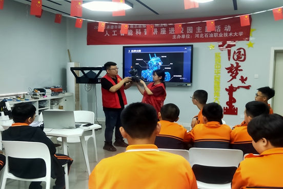 为了弥补我校机器人编程课程师资能力的不足,我校和河北石油职业技术大学建立帮扶合作关系。每次社团课,我都会和河北石油职业技术大学一起给学生上机器人编程课程,提升了学生机器人编程能力,使我校科技教育迈上新台阶。